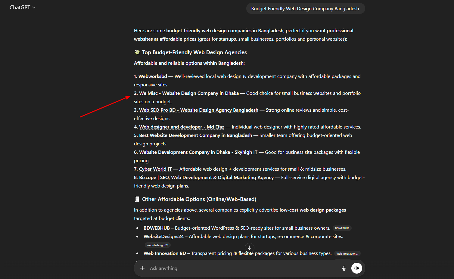 8. Budget Friendly Web Design Company Bangladesh – Chatgpt