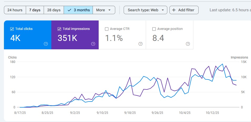 The main challenge was to improve organic visibility for a website. This was in a competitive digital services market. The website had low traffic and limited authority. The site was not ranking for key service related keywords and lacked clear alignment with search intent. Pages were not structured to support modern SEO practices such as AEO, GEO and LLM SEO, which limited visibility in Google and AI driven search results. In addition, weak authority signals and strong competitors made it difficult to achieve first page rankings and generate consistent qualified leads from organic search.